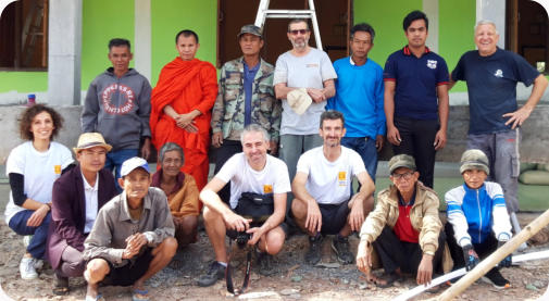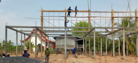 (ADV Laos) apprenti électricien, virtuose du marteau pour la pose des goulottes.