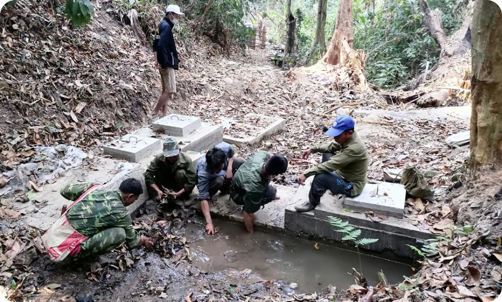 Une réflexion a été engagée avec les populations sur le prix de l’eau . En effet, la distance de la source et la mise en place de branchements privatifs engendrent des frais de maintenance supplémentaires pour le village. Il a été important d’établir un prix suffisant pour alimenter le fonds de maintenance et assurer la pérennité du réseau sur le long terme. Confluence a assuré une formation du comité de gestion de l’eau sur la gestion et l’entretien d’un réseau à branchements privatifs, portant notamment sur le relevé des compteurs et la facturation. Enfin, un travail a été effectué avec les bureaux de l’agriculture et des ressources naturelles du district de Phonxay afin de délimiter la zone de protection de la source. Hintang se trouvant dans une zone de forte pression agricole et la source étant située dans un village voisin, une coordination avec ce dernier a été indispensable.