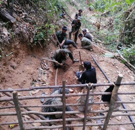 Les villageois ont participé à la construction en fournissant main-d’œuvre et matériaux disponibles localement (bois, sable et gravier). Chaque ménage à contribué également à hauteur de 200 000 kips (env. 11 en décembre 2022) pour couvrir les frais de raccordement. Le raccordement des ménages pauvres ont été subventionnés par le projet.