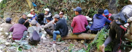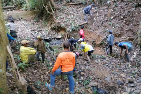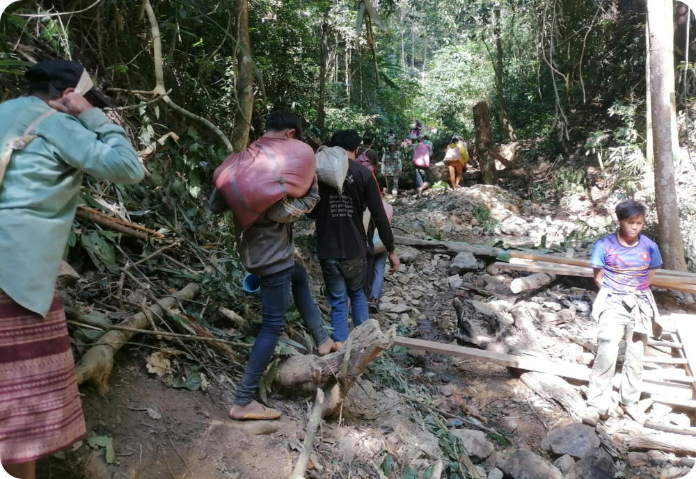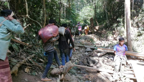 Les matériaux sont transportés par les villageois