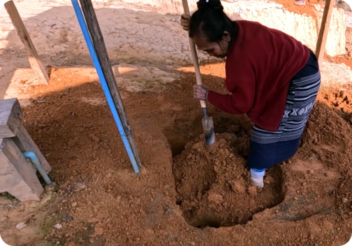 Le projet a aussi révélé un nouveau besoin exprimé par les femmes du village : construire des toilettes en dur pour les familles ne