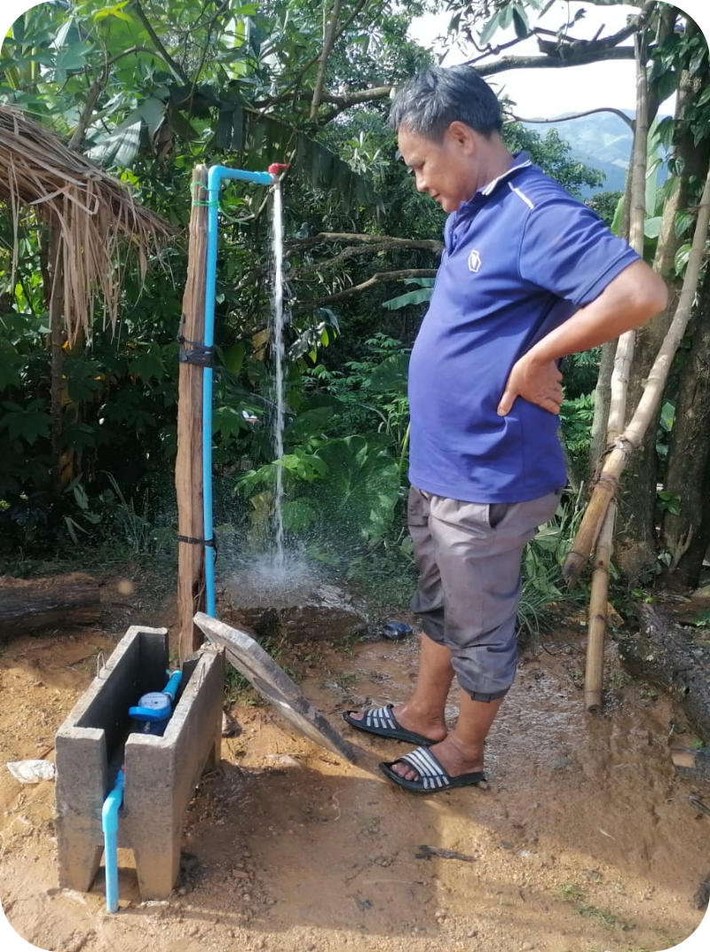 Le projet mené à Houay Pien , petit village perché dans les montagnes du Nord Laos, a profondément transformé le quotidien de ses habitants. Trois grands objectifs guidaient cette aventure humaine et solidaire : 1 . apporter l’eau au village , 2 . améliorer l’assainissement ( VOIR ), 3 . offrir aux enfants un bloc sanitaire digne et fonctionnel à l’école ( VOIR ) Après plusieurs missions sur le terrain, le constat est unanime : l’eau coule désormais jusqu’aux foyers de Houay Pien , en quantité suffisante et de bonne qualité tout au long de l’année. Grâce à la mobilisation du comité local , formé et soutenu par les partenaires techniques, le réseau d’eau est géré de manière autonome et efficace . Les infrastructures réalisées captage, bassins, réservoirs et 4,5 km de conduites garantissent un approvisionnement pour tout le village, y compris les plus vulnérables, comme cette femme seule à qui un branchement privatif a été accordé à la suite d’une réunion des femmes. Au-delà de l’aspect technique, ce réseau d’eau a renforcé la solidarité et la responsabilité collective . Chaque foyer contribue, entretient, veille sur les installations. L’eau, plus qu’une ressource, est devenue un bien commun qui unit les habitants.