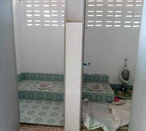 Espace douches à droite des 2 cabinets de toilette